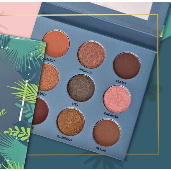 APaleta de sombras Tropical Paradise vem em 2 versões de 9 cores, entre peroladas e matte, versão Island Paradise (verde), possui 4 sombras matte e 5 peroladas, com tons mais frios e claros e versão Tropical Paradise (rosa), que possui 9 sombras , sendo 4 matte e 5 cintilantes em tons mais quentes.